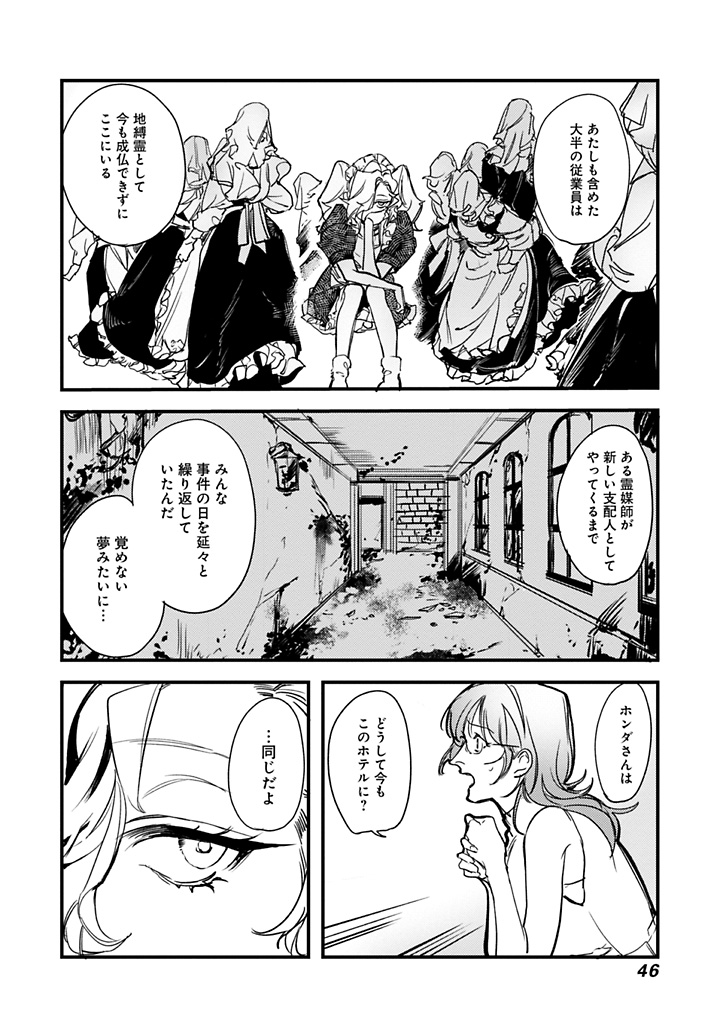カナダのとある地方に幽霊の出るホテルがあるらしい (13/13) シェパードハウス第1話終 第1巻、本日4/18発売です! よろしくお願いいたします! #漫画が読めるハッシュタグ #シェパードハウス・ホテル
