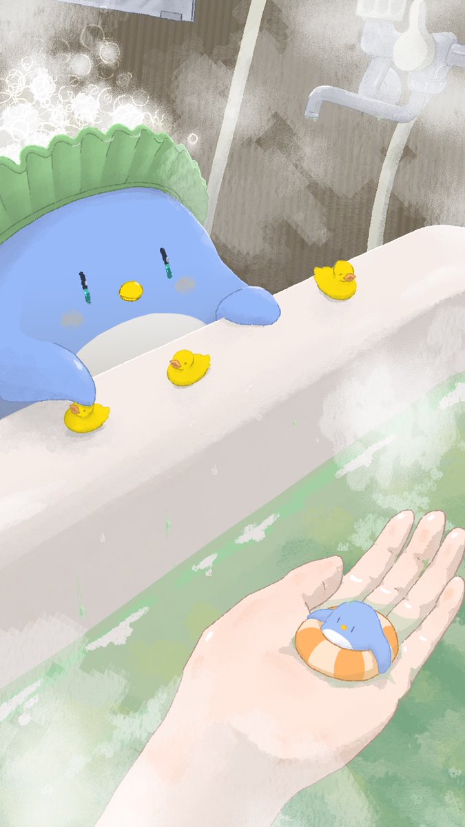 たまに風呂を借りにくるペンギンがおってもいい🐧 #たけぉぇかき