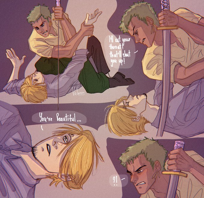 Zosan X princess mononoke " - I'll cut your throat! That will shut you up! - You're beautiful... " #onepiece #onepiecefanart #fanart #zoro #sanji #sanjivinsmoke #roronoazoro #zosan