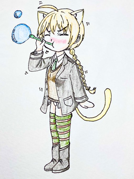 32 96 おはようございますっ😆‼️ 初リーネさん(デフォルメ)描いてみました! 初めて描くキャラクターなのでイラストやアニメなどの資料見ながら描いたのですが、髪型や胸元のふくよかなおっ○いが難しかった..... リーネさん『んんん〜〜〜っ💦』 シャボン玉膨らませてるが膨らまない様子です....σ(^_^;) 23/07/13 06:30