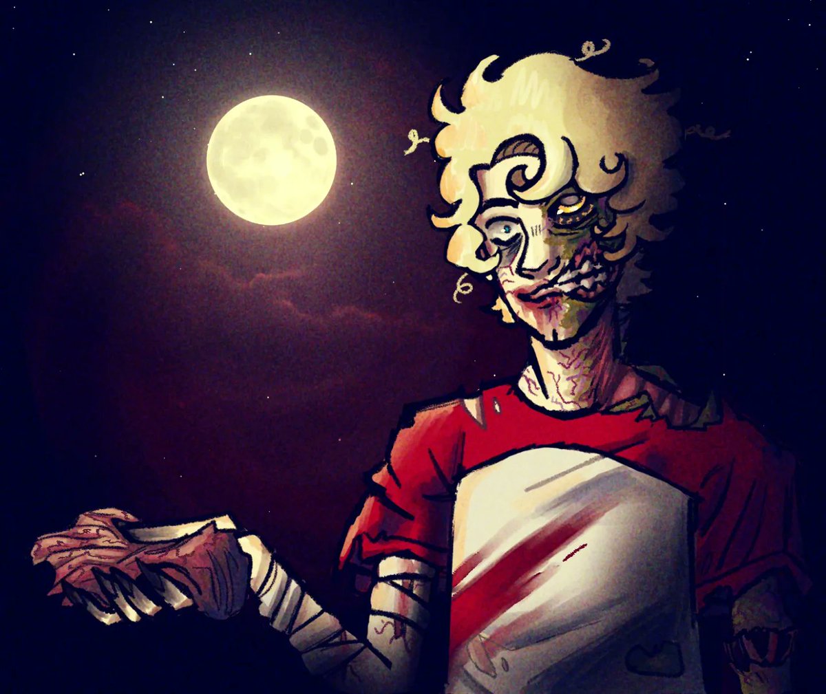 // blood, eye damage - - - - zombie with a fire motif #wilbursootfanart #wilbursoot #dsmpfanart