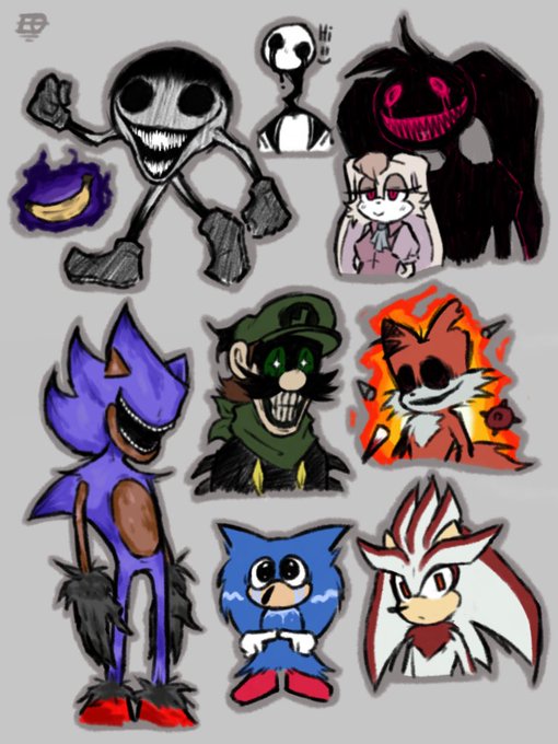 Many doodles of EXEs! I really like all these designs and the people who created them are just lovely people! Still going to draw more so y’all can still comment your EXEs on the tweet asking for em! #sonicexe #sonicexeoc #SonicTheHedgehog