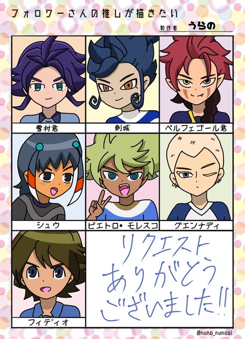 #イナイレいつでも真剣お絵描き60分一本勝負 お題:苺 時間:60分+52分 今回はスターユニコーンメンバーの(アメリカ4連星を抜いた)お気に入りの子で! ガチで真面目に描いたら60分以上かかるんよ…