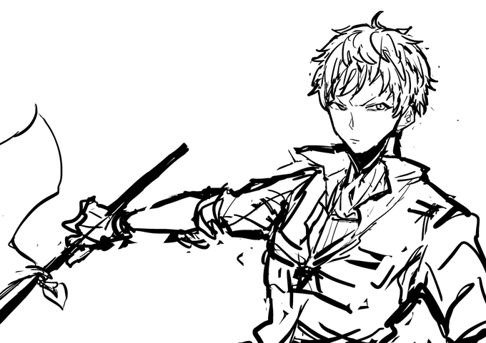 拙僧の誕生日間近ですがそれはそれとして小官の誕生日絵の時の没ラフが出てきました。 かっこいい感じにしたかったはずだったのに最終的にゲテ…手料理を差し出す人になりました。うむ twitter.com/Urobiriri/stat…