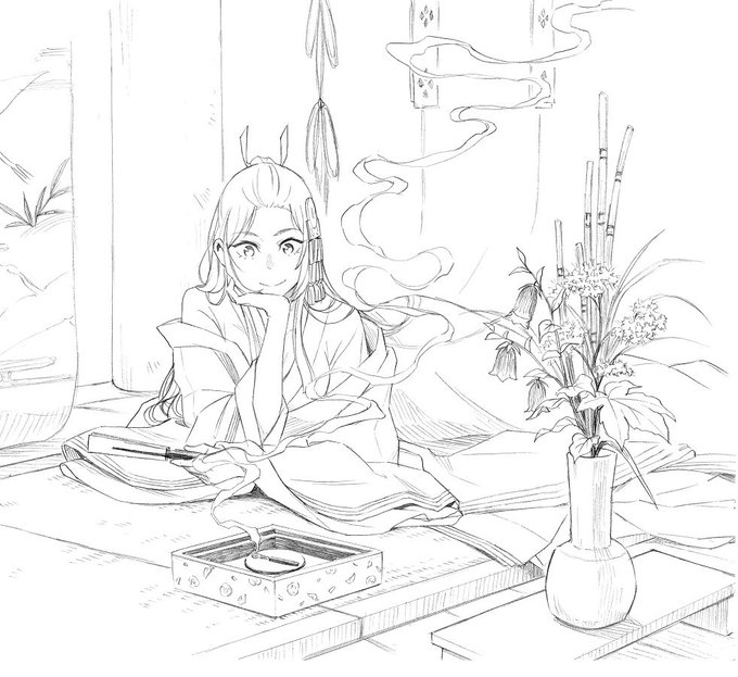 5 23 マッチ型のお香を楽しむ雲雀ちゃん #イラスト #ゆうなぎおえかき #宮廷に鈴の音ひびく 22/07/25 12:02