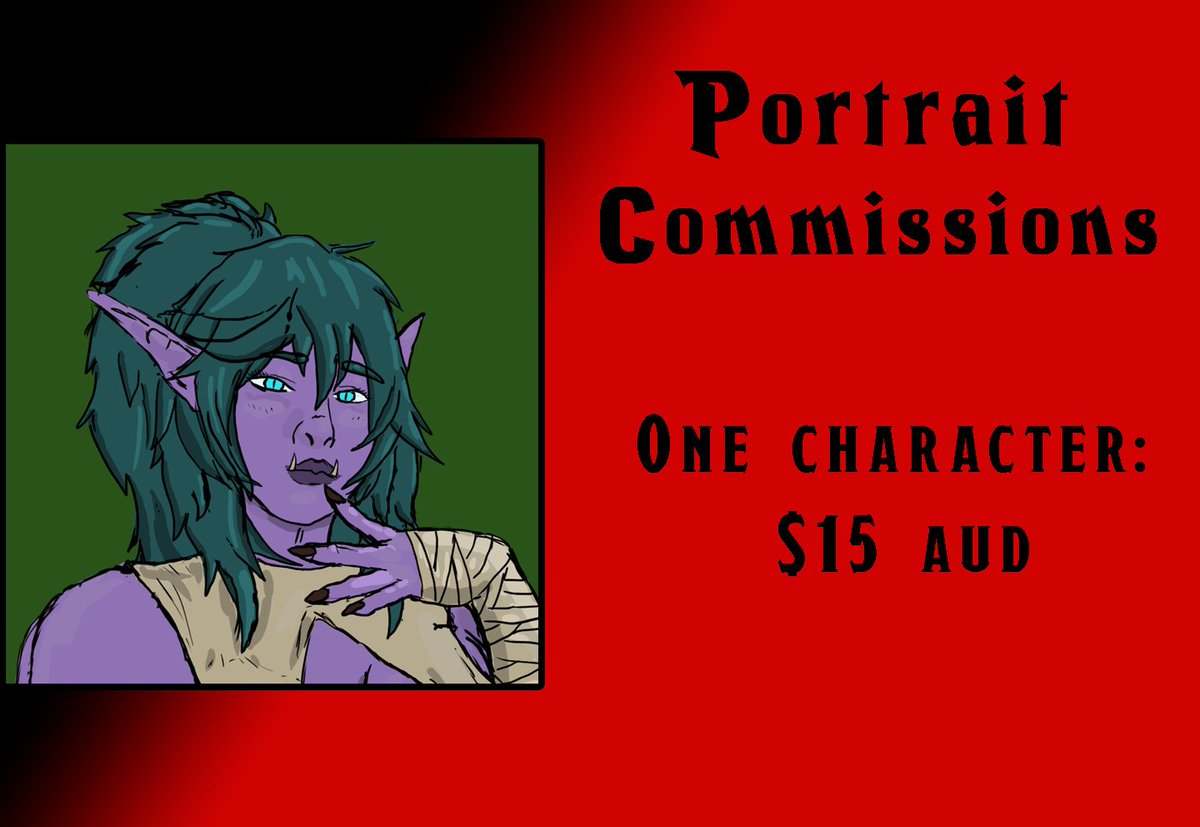 Hello all! I'm an Aussie artist who loves Dungeons & Dragons. I'm looking to make some extra money for a new drawing pad & figured I would open commissions to help reach my goal. Below you can find my Commission Info, please feel free to shoot me a DM! #dndart #opencommissions