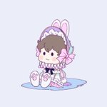おくるみの中でうさぎの耳がついた帽子をかぶってる、ディラママのたからもの…💫