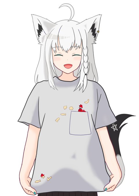 おっとっとのTシャツ着たフブちゃんってこんな感じかな? #絵フブキ