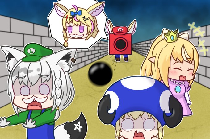 28 122 バカタレサーカスの3Dマリオは楽しかったなぁ 個人的にツボったのはフレンドリーファイアでわちゃわちゃしたシーンでしたですのでイラスト化 #絵フブキ #しらぬえ #つのまきあーと #絵まる 23/07/23 20:38