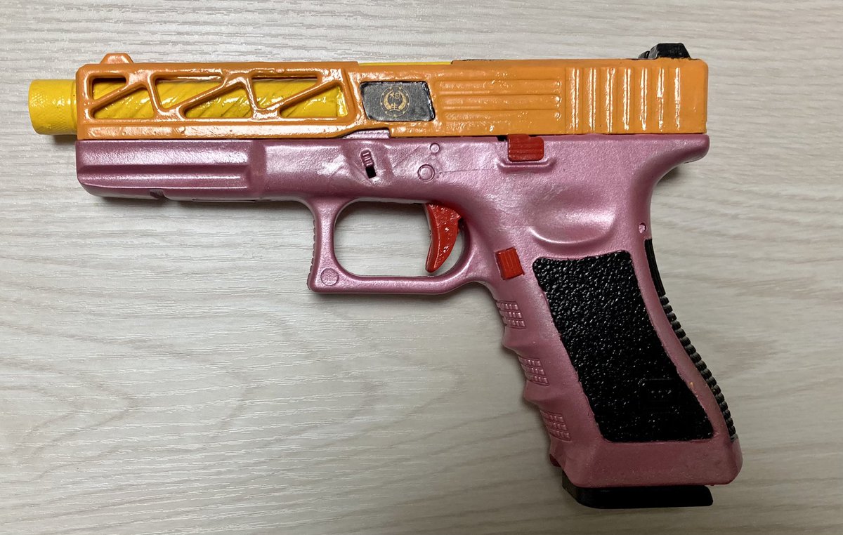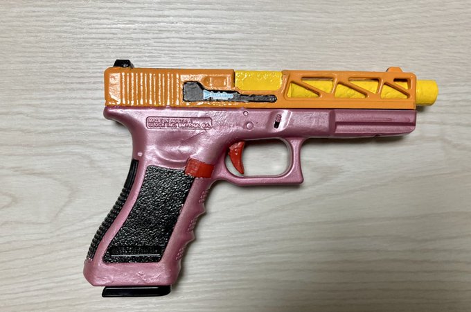 完成しました! 桐生ココ仕様のハンドガンです! 初めてのオリジナル塗装だったので出来栄えはいいとは言えないけど、 個人的に最高の出来で、最高の推し事でした!ありがとうございました! 会長!約2年間本当にお疲れ様でした! またね!!! #みかじ絵 #たつのこ #桐生ココ #桐生ココ卒業記念