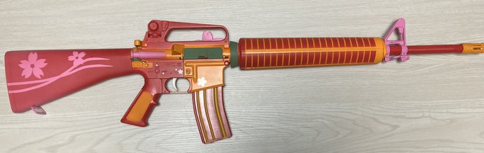32 94 遂に完成致しました!! みこち仕様のM16A2! こちらは、6月のホログラにて登場したみこち仕様のホロ銃を元に制作、再現してみました! 桜のオブジェがなかなか上手く出来なくて大変だった…😭 なかなかの再現度になったのではないでしょうか!! #miko_Art 22/08/31 22:52