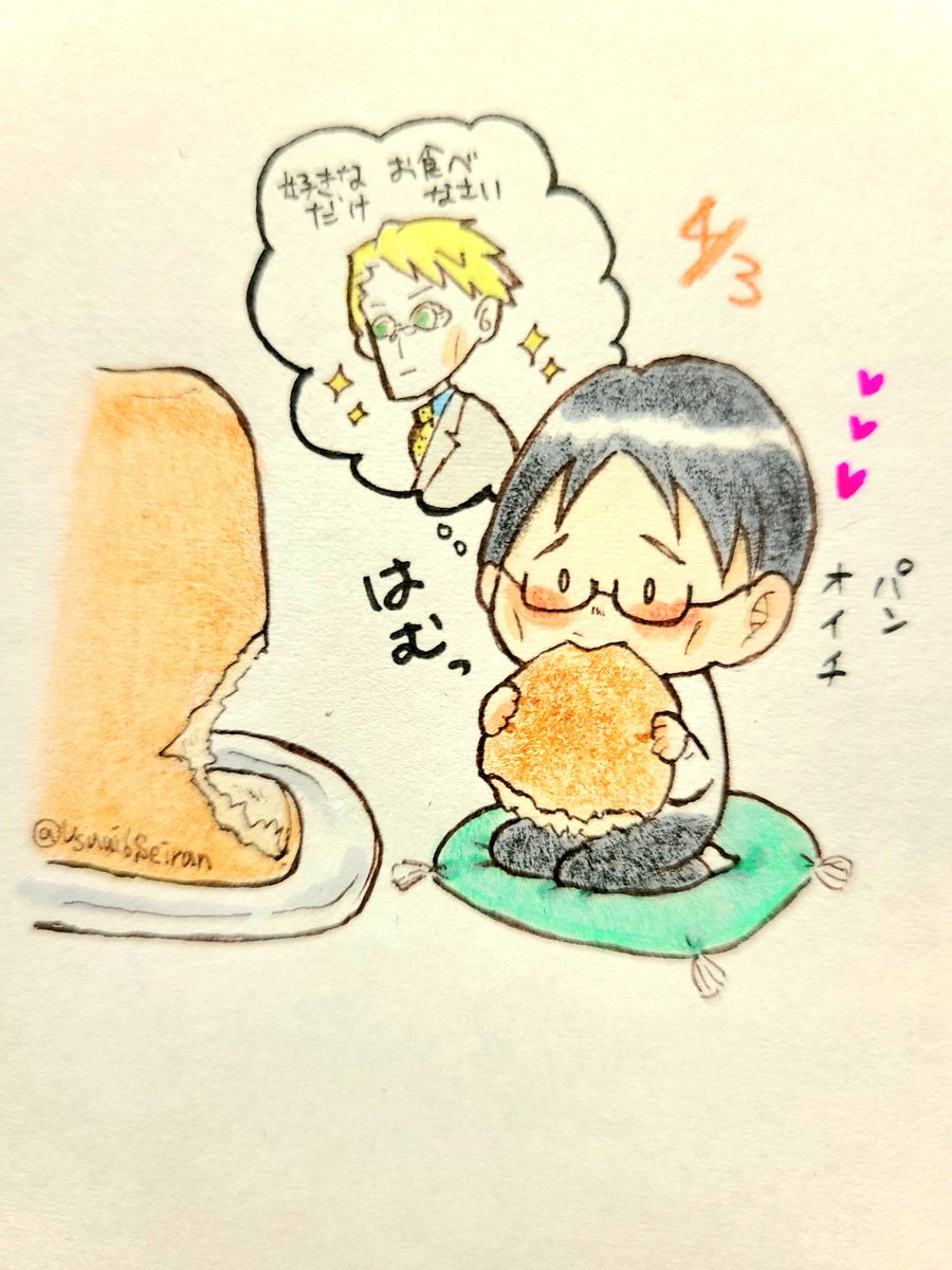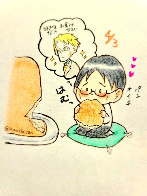 10 38 #いじきよ生誕祭2022カウントダウン ちっちゃくなったので七さんからパンを頂きました🍞 22/04/03 06:39