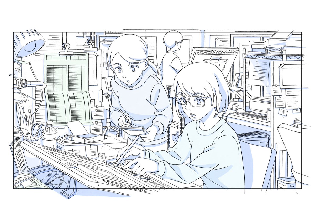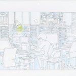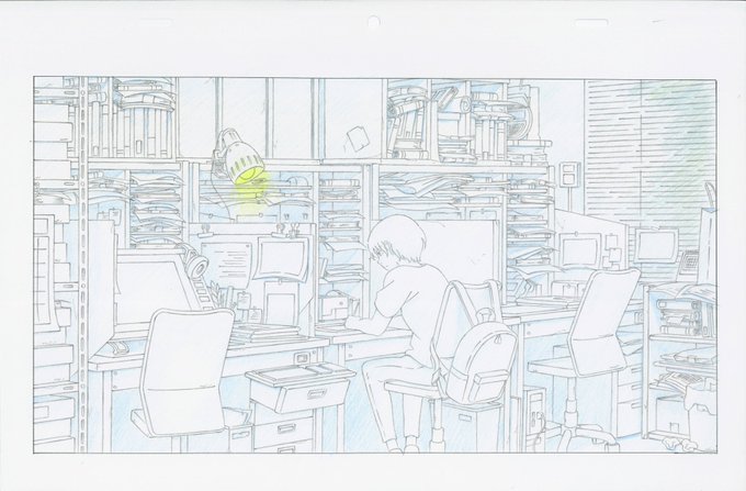 早朝の薄暗いスタジオ