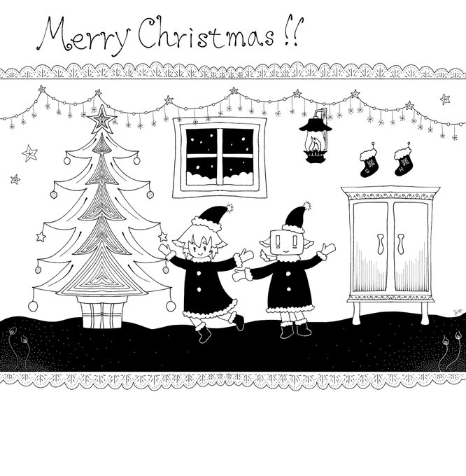#bintrollFA 🐶📦️小人のサンタさん🥰 クリスマスカードです🎅💕 下にメッセージが書き込めます☺️ もし良かったら、使ってみて下さい!!! 素敵なクリスマスを✨🎄✨🎅🎄🎁💕 (細かい模様苦手な方は注意かもです⚠️)
