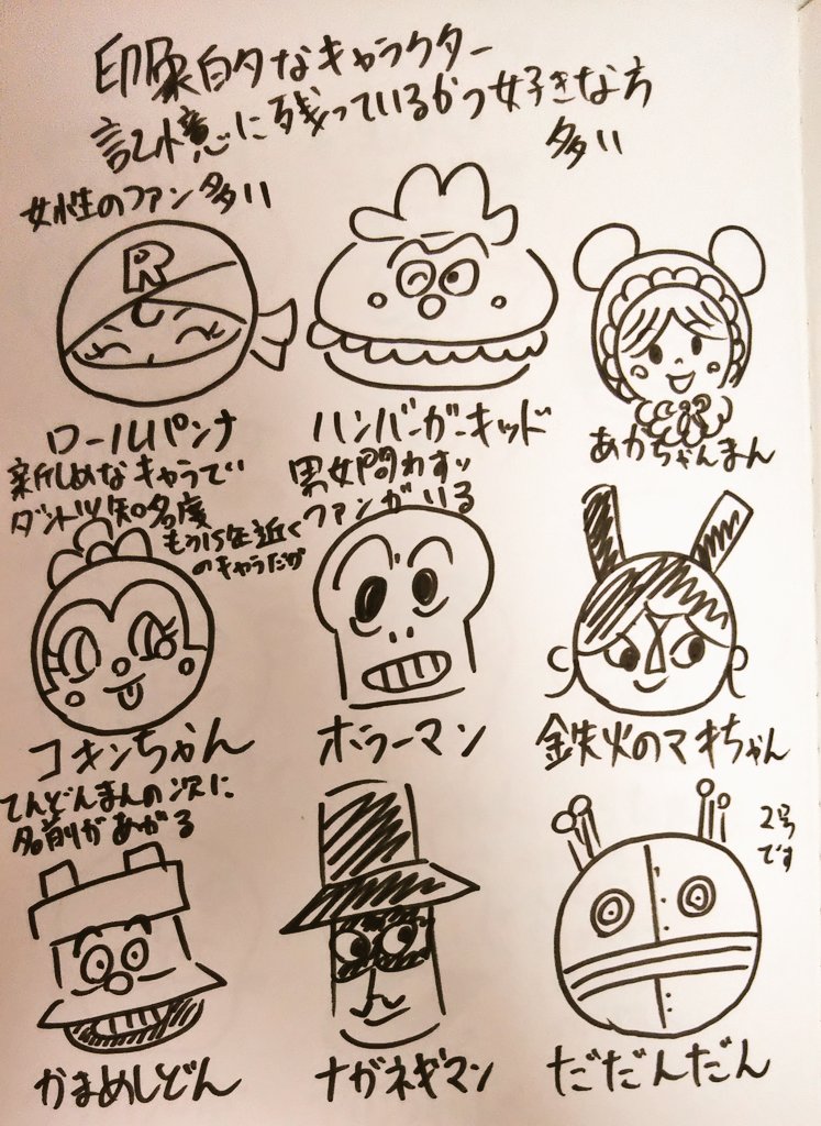 らくがき 世間のアンパンマンのキャラクターの知名度ってこんな感じな気がする。