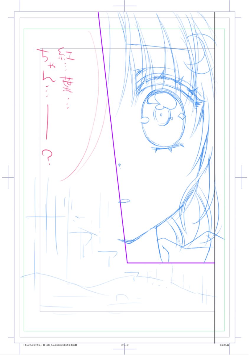 「そらいろメモリアル」連載再開1話目のネームがやっとできた!🌈🎶 いつ発表かは詳細が決まり次第お知らせします! 画像は没カット(※本編には出てこないシーン)💦 #そらいろメモリアル #ちゃおコミ #やぶうち優