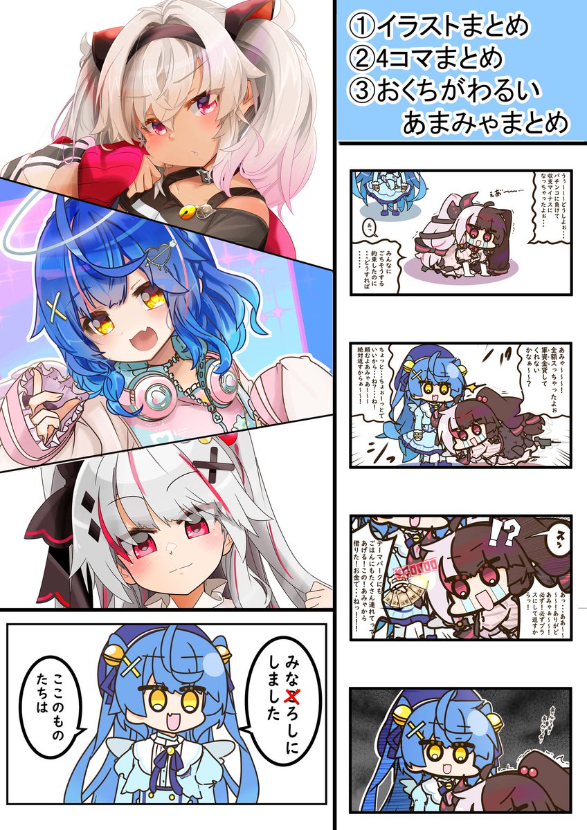 23 93 YTJレジスタンス(せ-31 ) 新刊 「げいむるついんず」 -イラストまとめ- フルカラー/32p/500円 げーむるの3人をメインにこれまで描いたイラストまとめ本 1枚絵や4コマ、おくちがわるいあまみゃのいくつかを集め1冊にしました まとめ本は初なのでぜひご覧いただけたら嬉しです #にじそうさく07 23/04/29 23:29
