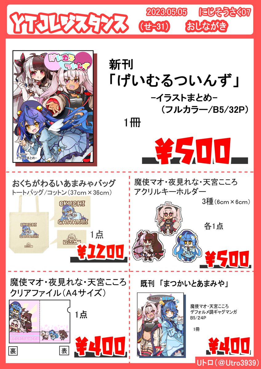 14 52 #にじそうさく07 おしながきです。 YTJレジスタンス(せ-31) をよろしくお願いします。 23/05/01 21:53