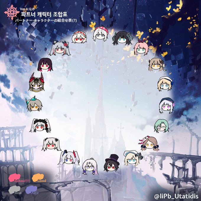 #arcaea #arcaea_art 파트너 캐릭터(3.12.0) 조합표입니다. パートナー·キャラクター(3.12.0)の組合せ表(?)です。 사용방법은 이전과 동일합니다. 使用方法は以前と同じです。