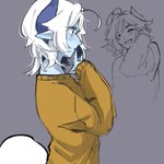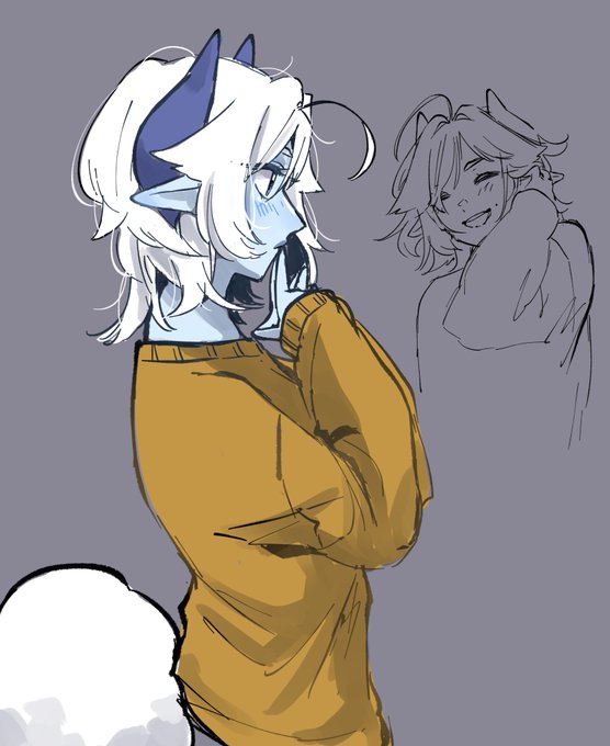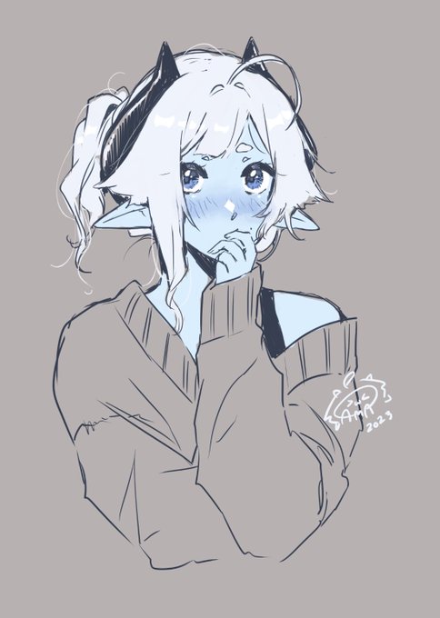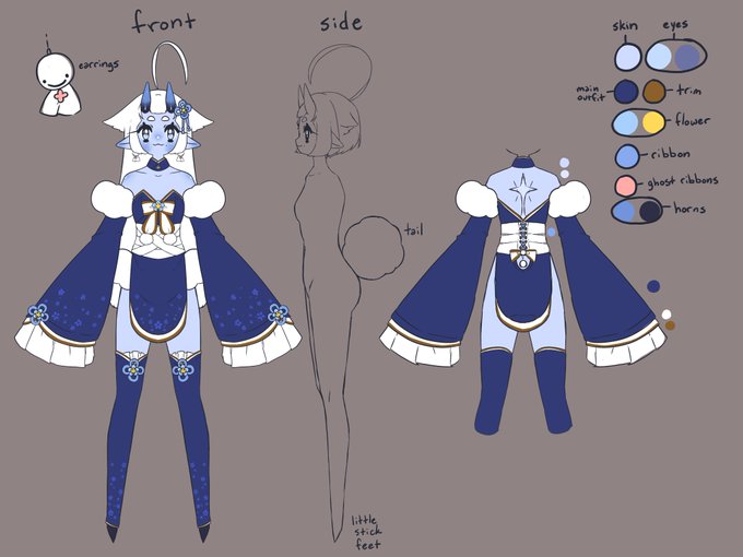 Hello Brozu! My name is Amaryllis and I am blue oni. I like to draw fast and play ukulele and be comfy. But sometimes we do a screm heeheehuhu Welcome back to the void!! (Here's a dumpy ref I drew meself!) #Vtuber | #ENVtuber | #illustration