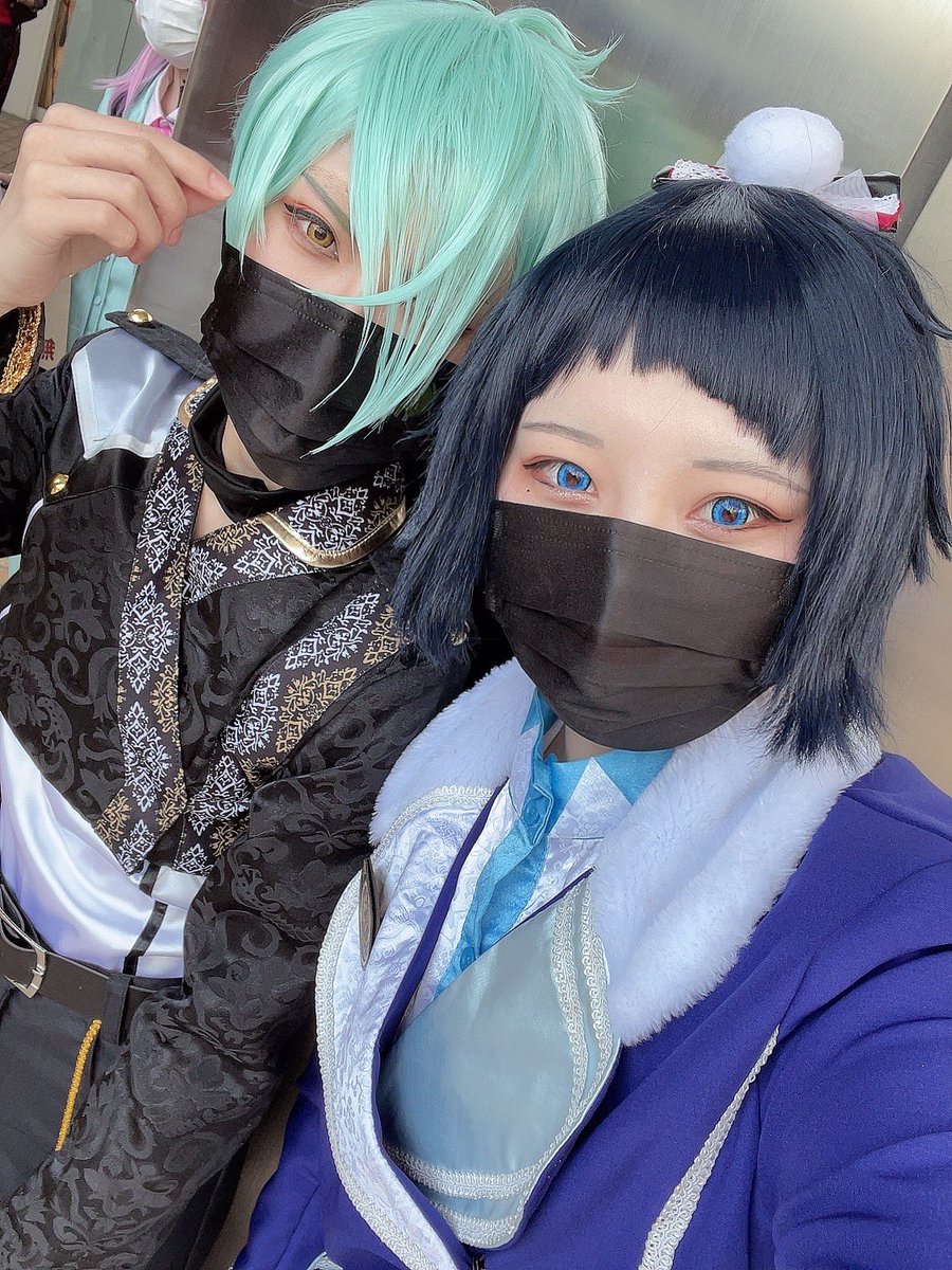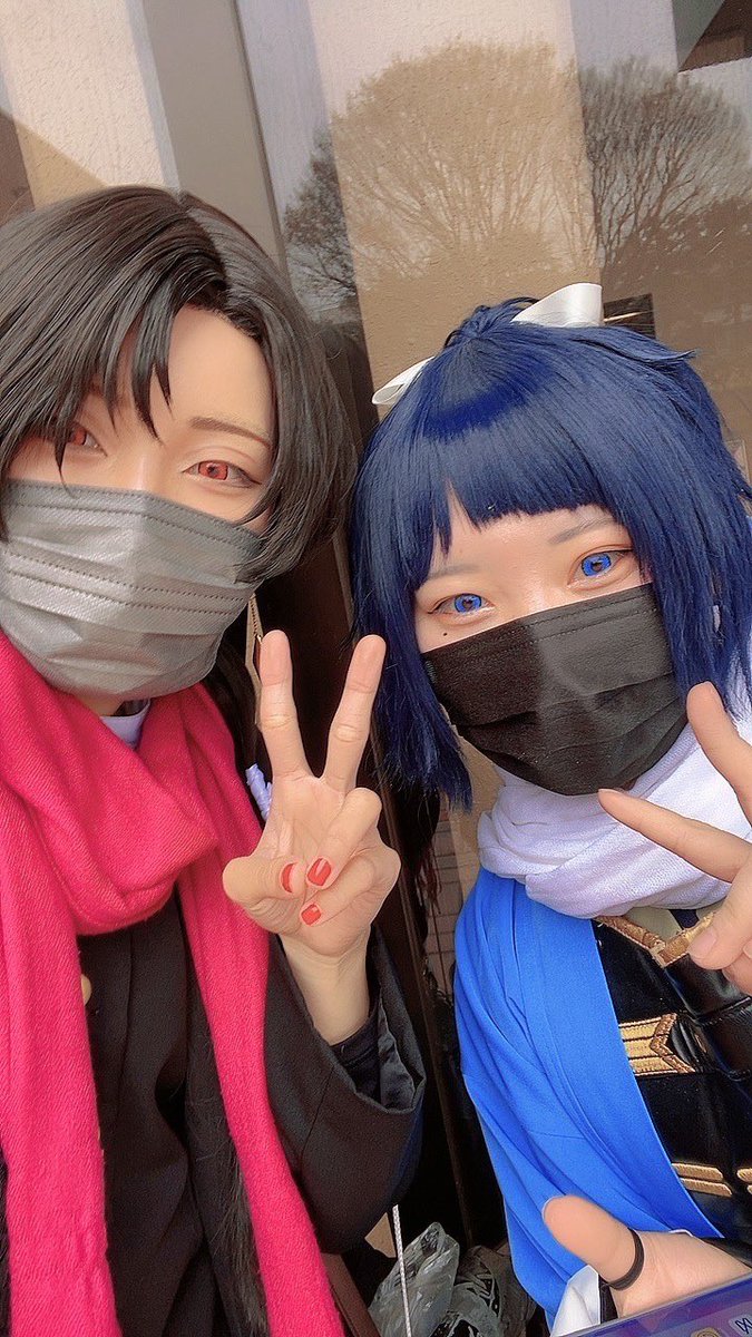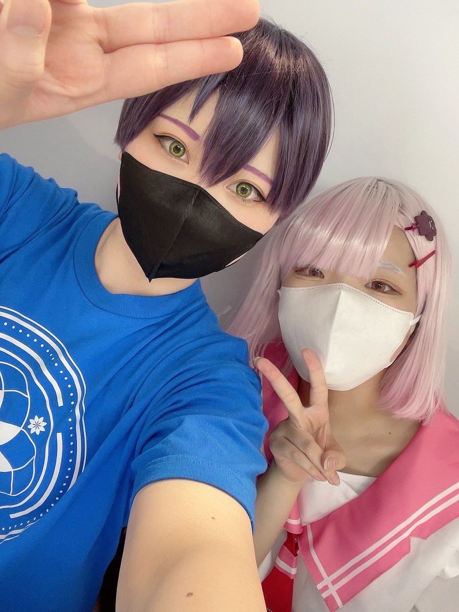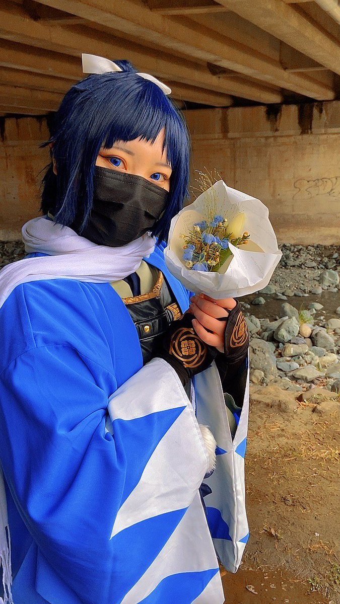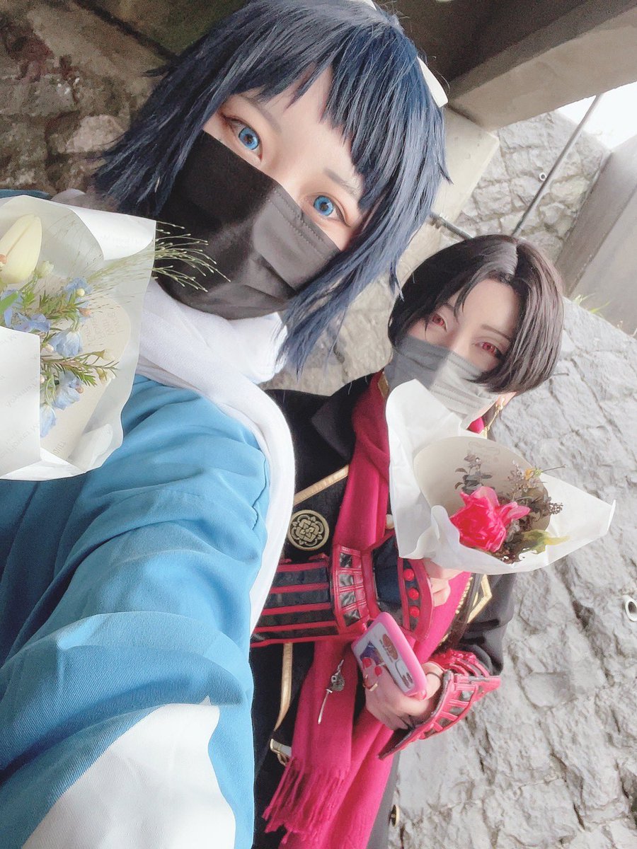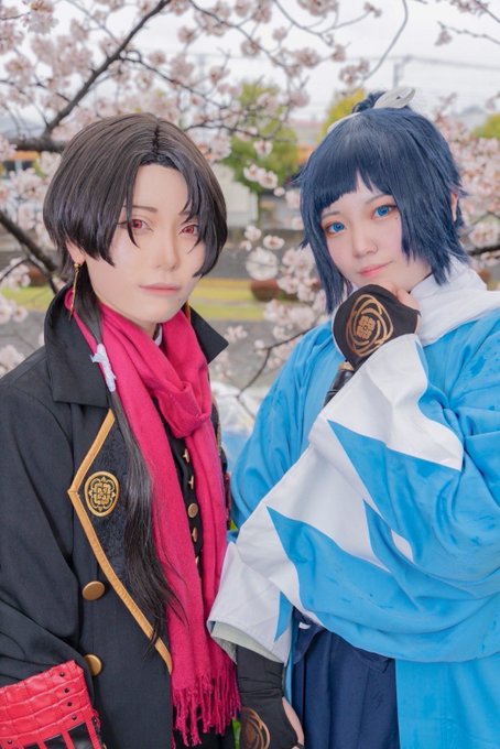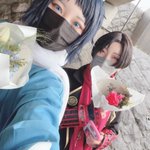 #コスプレQ2022桜イベント 約4ヶ月ぶりのうきちゃん! 今日はありがとうね☺️ カメラして頂いた雨まこさん! 雨の中本当にありがとうございました😭 そして最後に素敵なお花まで…!!!! 安定と清光の色で本当に可愛くて☺️ お二方風邪引かずに気をつけてください🙌 清光 @Ma19750704 📸 @ame_mako