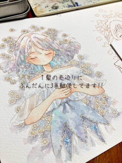 #この色無いと私の作品しにゅ 何となくタグ作ってみました! どんな画材でも皆様が愛用されてる色がとても知りたい……!! 活用してくれたら嬉しいですෆ 因みに私は ・VAN GOGH バーミリオン ・DANIEL SMITH rose of ultramarine ・DANIEL SMITH Moon grow どの作品も絶対↑の色は絶対使ってます!
