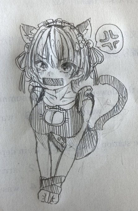 0 16 テストの問題用紙に描きましたわぁ⤴︎ 60分間これしか描いてないですわぁ〜 #イラスト #メイド #猫耳 #テスト 22/07/12 12:59