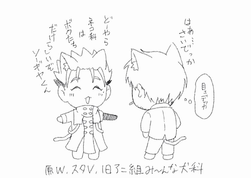 79 366 葬台(?)/WV ソ~ギ屋くんと原Vの組み合わせってあんまり見ないよなぁと思ったらくがき(cp要素ほぼ無い) ※猫耳付いてます 23/04/22 09:23