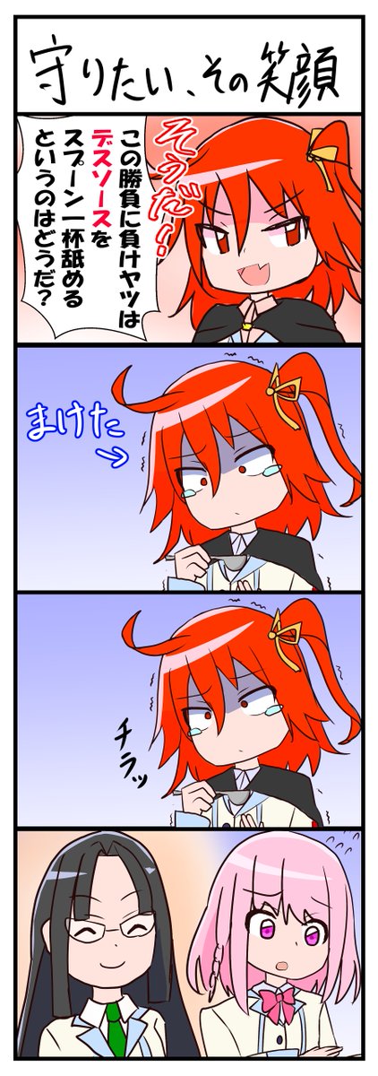 オンゲキの藍原椿と高瀬梨緒と結城莉玖の、ほのぼの日常4コマ描きました!☺ #オンゲキ