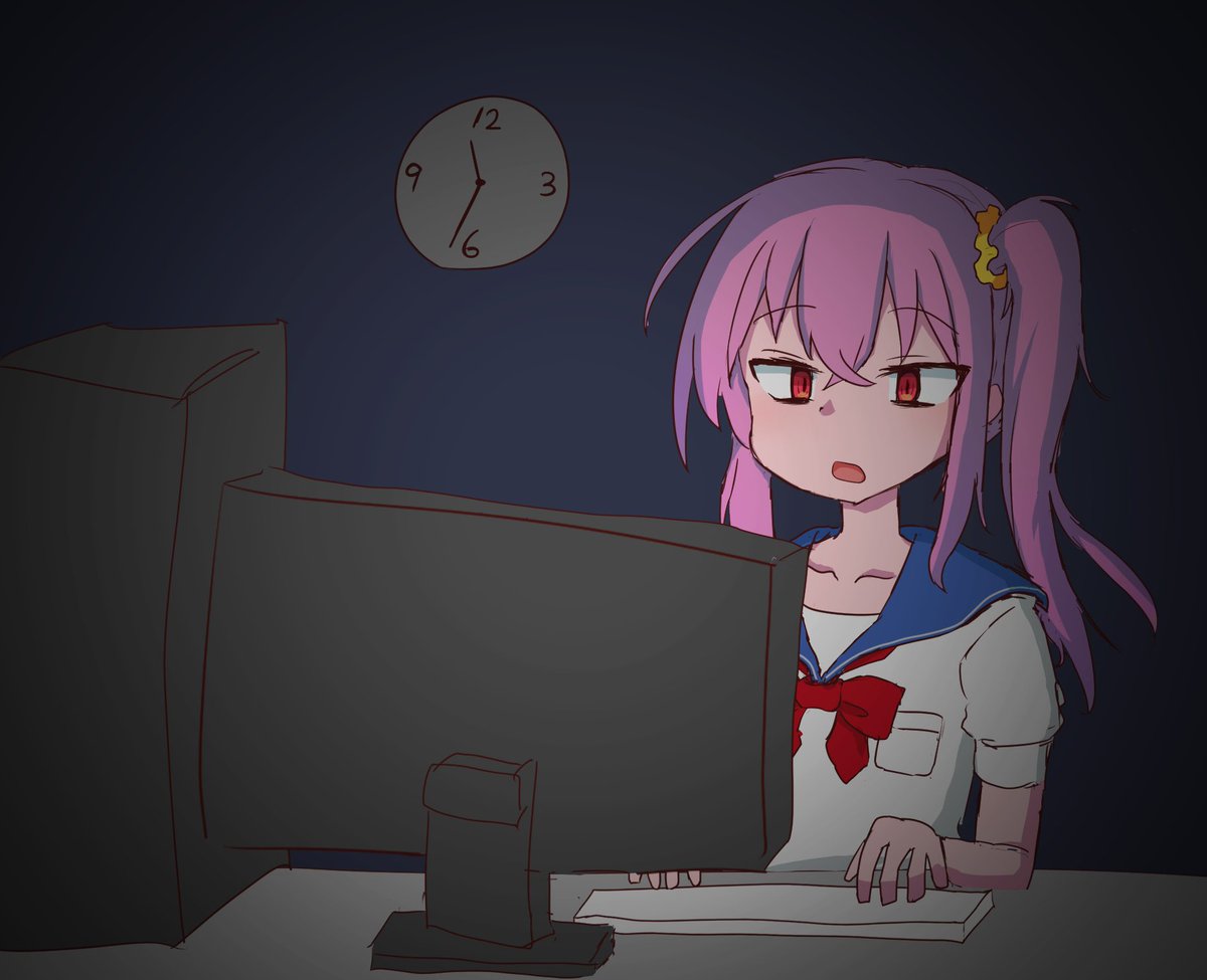 女子高生Vtuberが、ざんぎょ………居残りしている姿を描きました☺ #さくらのえ (@YukinagaSakura )