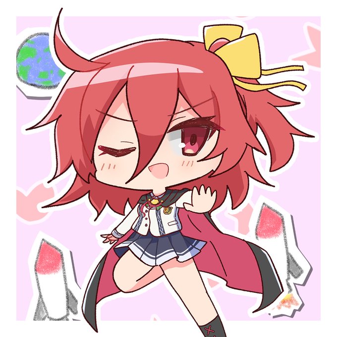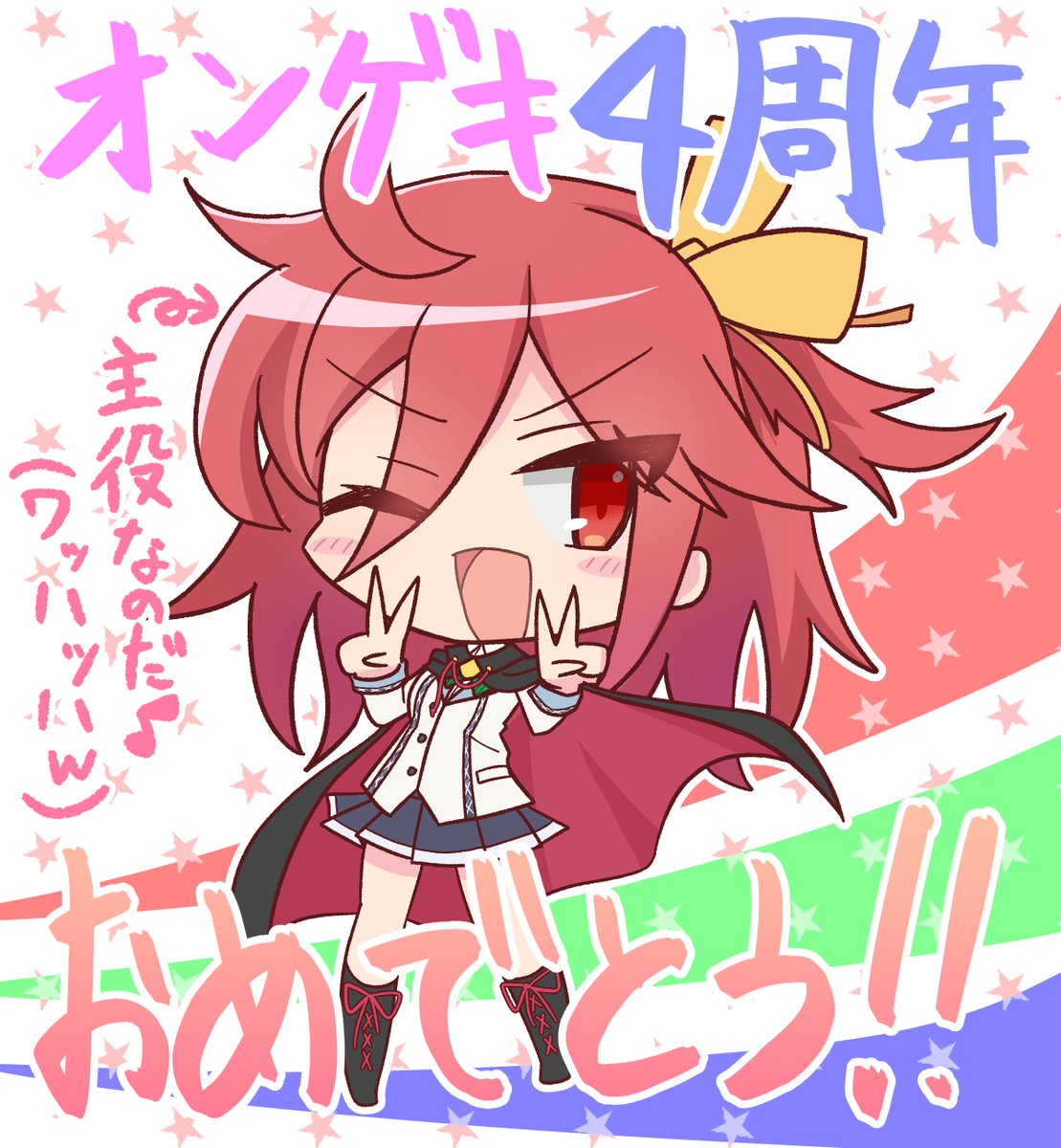 オンゲキ4周年おめでとうございます✨ REDから始めてドハマりし、毎週新曲を楽しみにしたり、高難度曲の押し方を研究したりして楽しんでます❣ これからも末永く奏でていけると嬉しいです…!🥳 なんかの曲でオンゲキの主役は茜様だと聞いたので茜様描きました🥰 #祝オンゲキ4周年 #オンゲキ