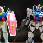 #ガンダムの日 #旧キット カッコいいのは断然右なんだけど、最近左の味わいがたまらない。