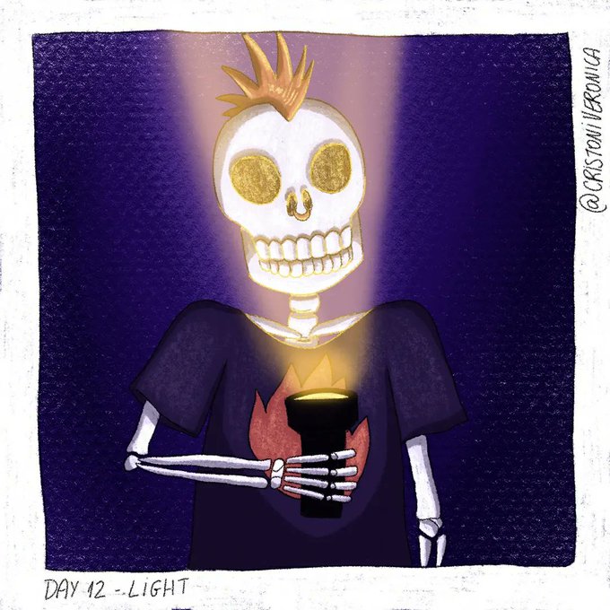 12. LIGHT 🔦 . Vamos fingir que eu não pulei uns dias :D . #witchtober2021 #ariaillutober2021 #redraw #artchallenge #witch #witchy #draw #drawing #sketch #painting #inktober #artoftheday #witchtober #illustration #ink #artober #drawtober #inktober2021 #light #skull