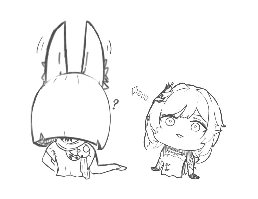 ティナリの獣耳しか見ないエリシアと部屋着千劫の落書き。