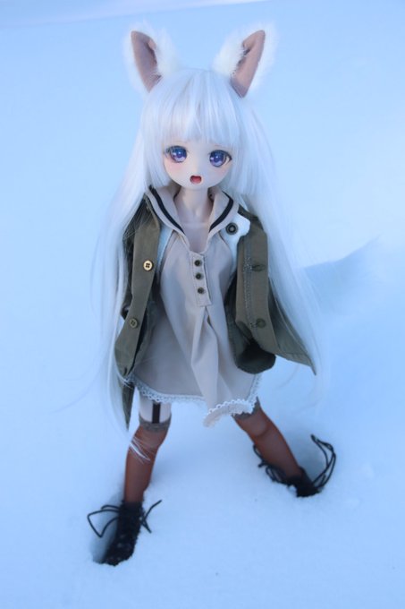 【もふもふ】過去 尻尾が白くて背景の雪と同化してわからんw #今夜のドール撮影120分一本勝負