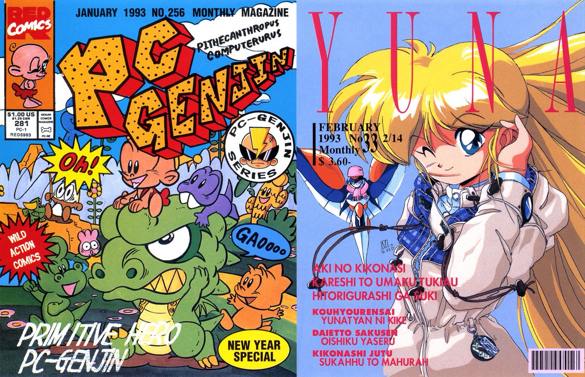 Calendar parodying well-known magazines (Nightmare = Fangoria, Yuna = Elle, BonksWeek = Newsweek, PC-Denjin = X-Men, Power Game = Nintendo Power, etc.)... 1/2 Via @GamingAlexandri archive.org/details/gekkan…