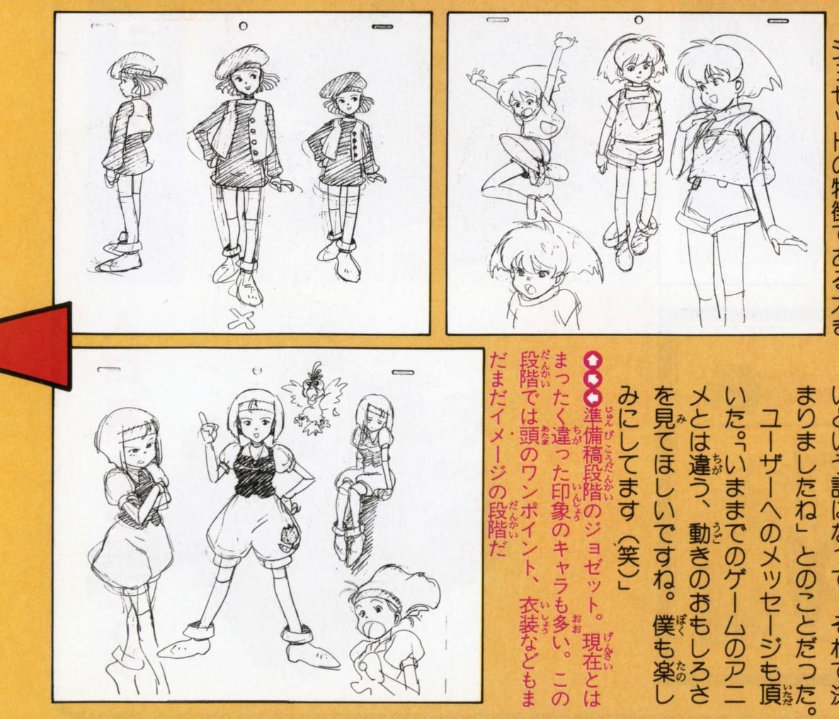 Design evolution of the main character of the N64 game Wonder Project J2 by Akihiko Yamashita / 山下明彦. Via @ozidual archive.org/details/famima…