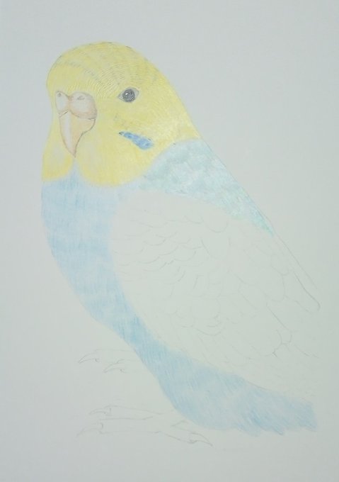 #色鉛筆画上達ドリル インコを描く 完成? 薄いのは勘弁。