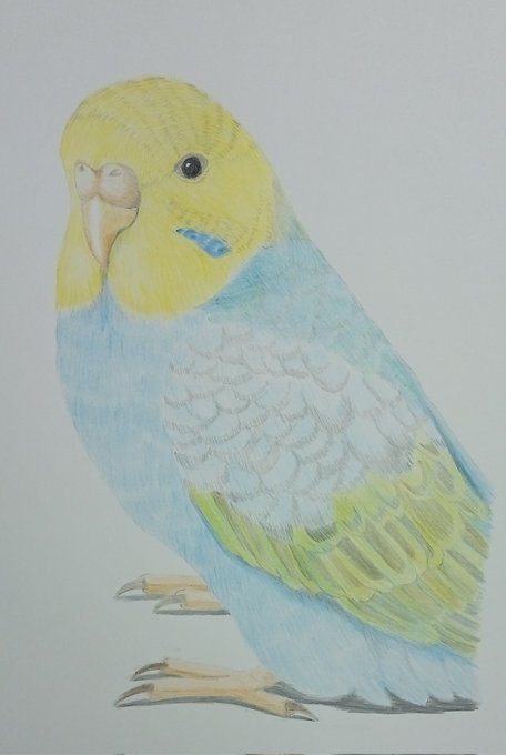 1 22 #色鉛筆画上達ドリル インコを描く 完成? 薄いのは勘弁。 22/07/07 10:22