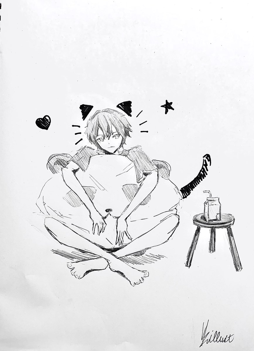 友達に秋のるぅとくん描いて〜と言われた 下半身描いてる途中で寝た #るぅとぎゃらりー