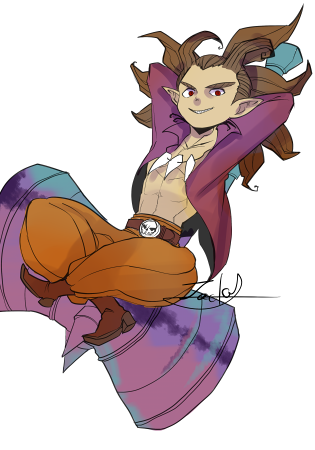 先日ライデン氏描いたけどやっぱりメインキャラのジャキお君も描いたよ。 お題「自キャラのカッコいい所」!はたらくアストルティアアンソロの方では結構抜けた性格に描いたけど実際はこんな子です。楽しそうな始末依頼が来ると笑っちゃう。 #DQ10突発キャラ創作会