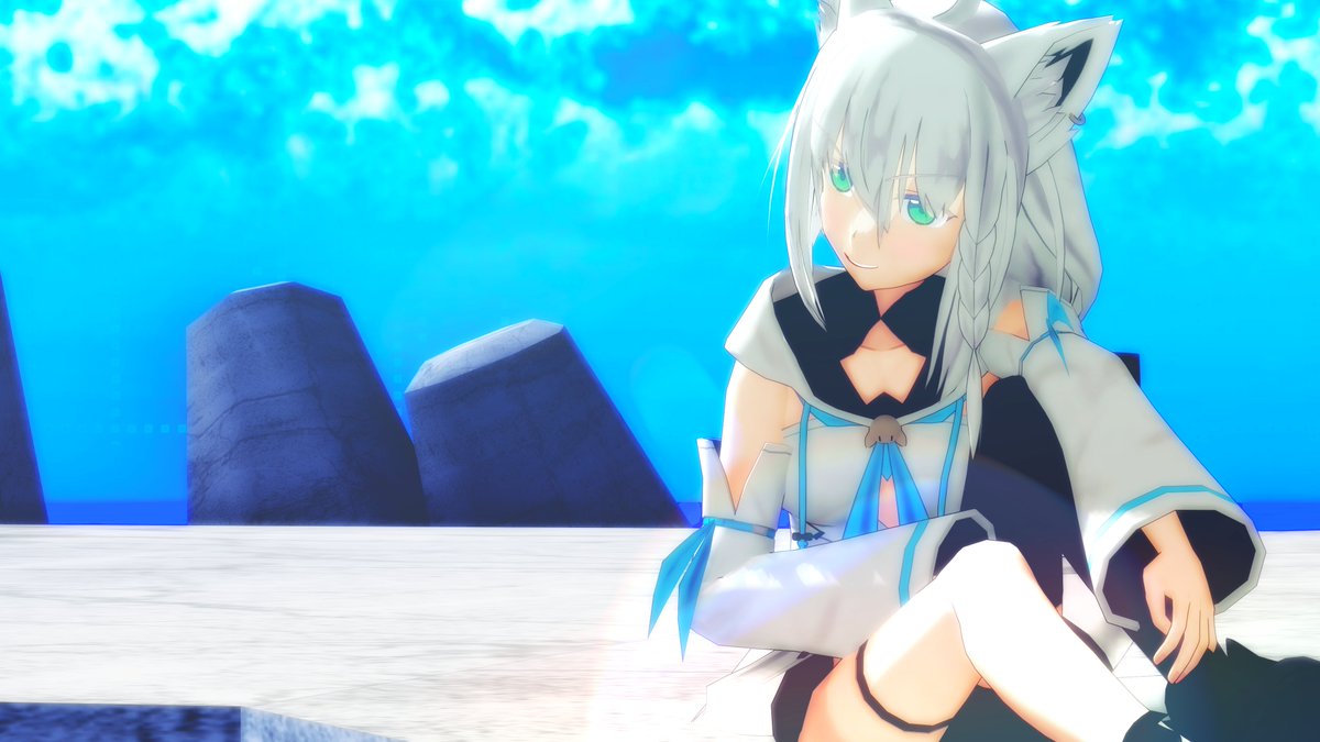 #絵フブキ 海辺で友達を待っているときにカッコつけてた頃の白上