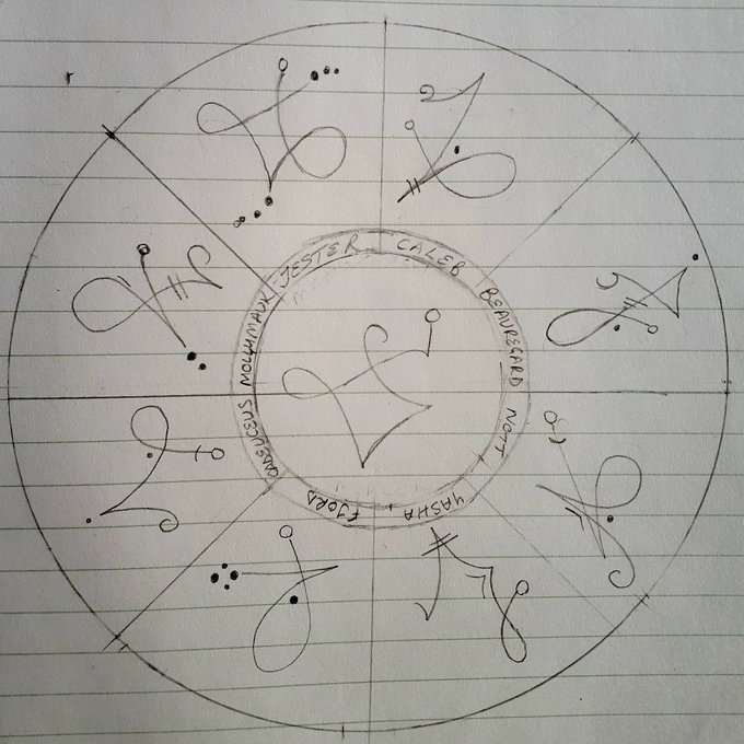 Turning my hand to #criticalrolefanart with something a little different after watching #pubdraw and feeling inspired to create. #Sigils are one of the few drawn things I'm good at and names are always interesting! Still very much a work in progress. #CriticalRole