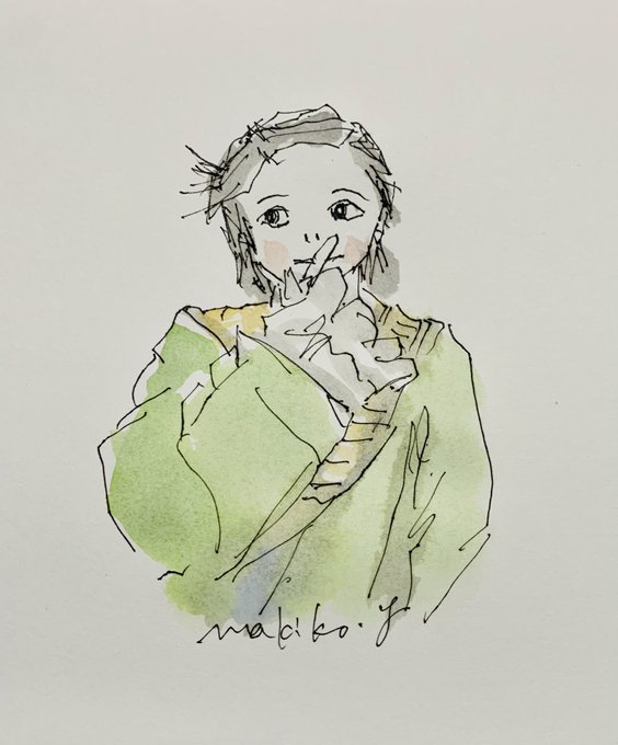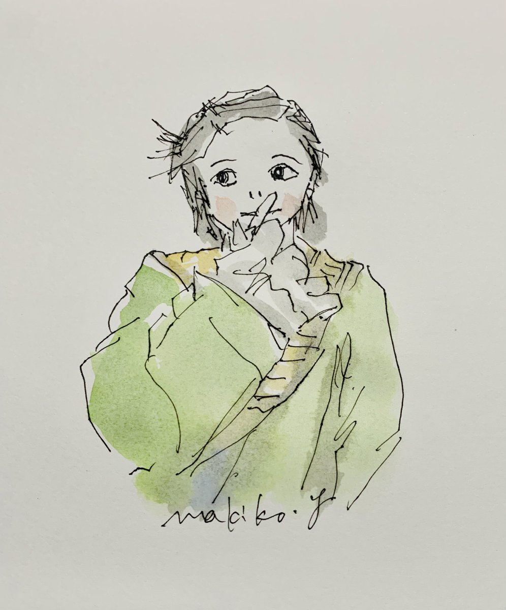 #フリーハンド #ペン画 #顔彩 おやすみなさい😘