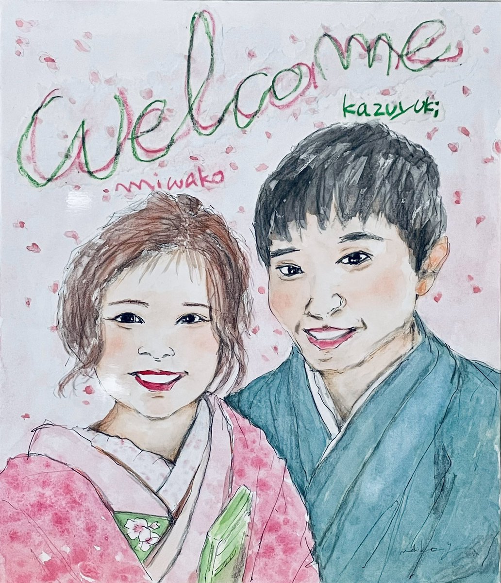 ついに完成です😆 間に合いました❤️❤️ #水彩紙F10号 #顔彩 #コピック #クレヨン #ウェルカムボード