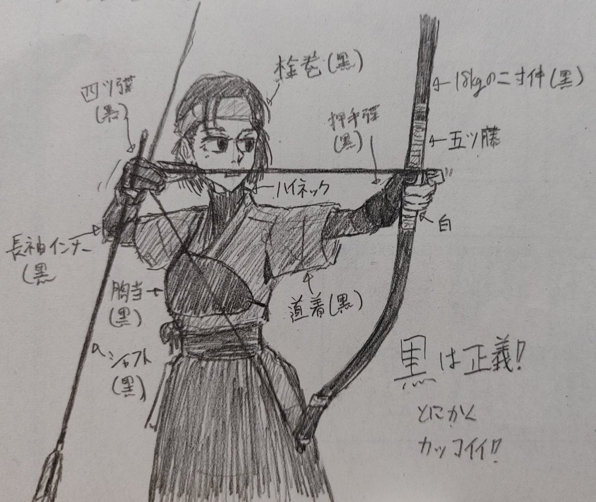 #絵描き繋がりたい #絵柄が好みって人がいればいいなぁ #弓道 リハビリとして久しぶりのデジタル絵を描いた。アイビスのトレースめっちゃ便利すぎる。 沼なんか最近弓道の絵しか描いてない気がするな…