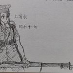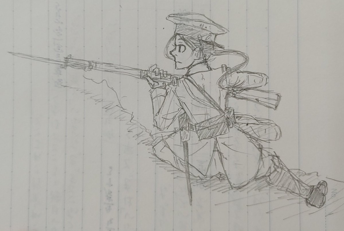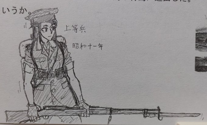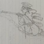 #絵描きさんと繋がりたい #絵柄が好みって人がいればいいなぁ 最近よく描く軍服シリーズ。今度は パレードの先頭を担う兵学校の首席卒業生。 普段の学校制服にライフルや背嚢などの装備一式を装着させ、帽子の前立が成績の良さを示している。