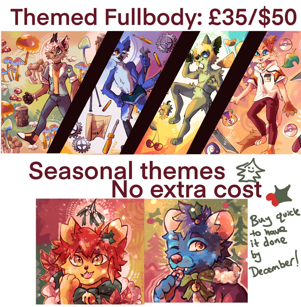🐡 commissions open! 🐡 my workplace is open a lot less in the winter so these will hopefully help me out! i can do seasonal themed options of any commission type and bab emotes are still open on my kofi for £6 (2 kofis!) ❤️+🔁= 💖💖💖💖 more info in links below! ⬇️