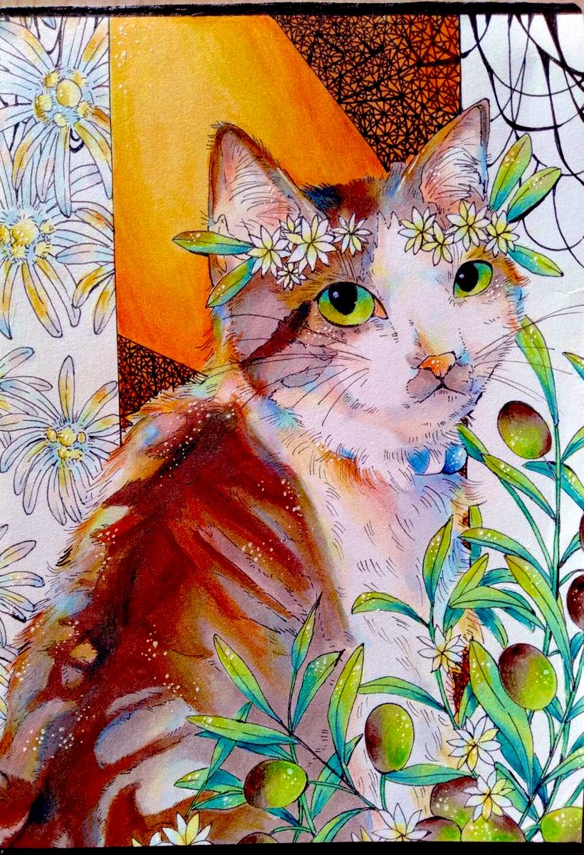 友達のお母さんに描いた絵 猫は昨日と一緒 #イラスト #猫 #コピック #色鉛筆