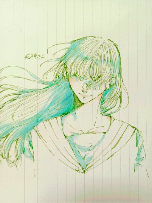 風に吹かれる死神さん あまりに綺麗で見惚れられてたら良い #ピエロの頭蓋 #イラスト